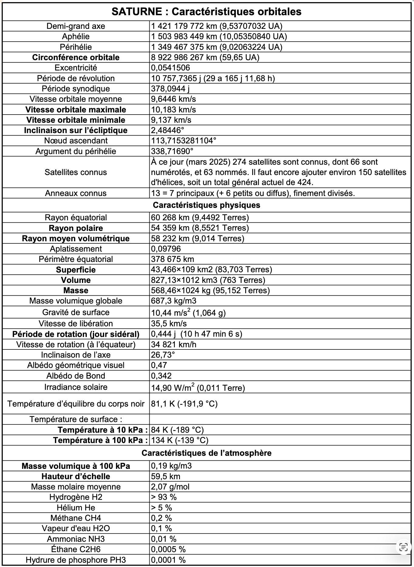 4) Données chiffrées concernant Saturne : Cliquez ↓